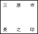 (26) | 市長職務代理者之印 | てん書 | 方18ミリ | 総務課 | 市長欠員又は事故があるときの敬老(心身障害者)優待乗車証、各種納入(付)通知書及び納税に関して作成する文書(証明書を除く。) | 木印 | 1 |