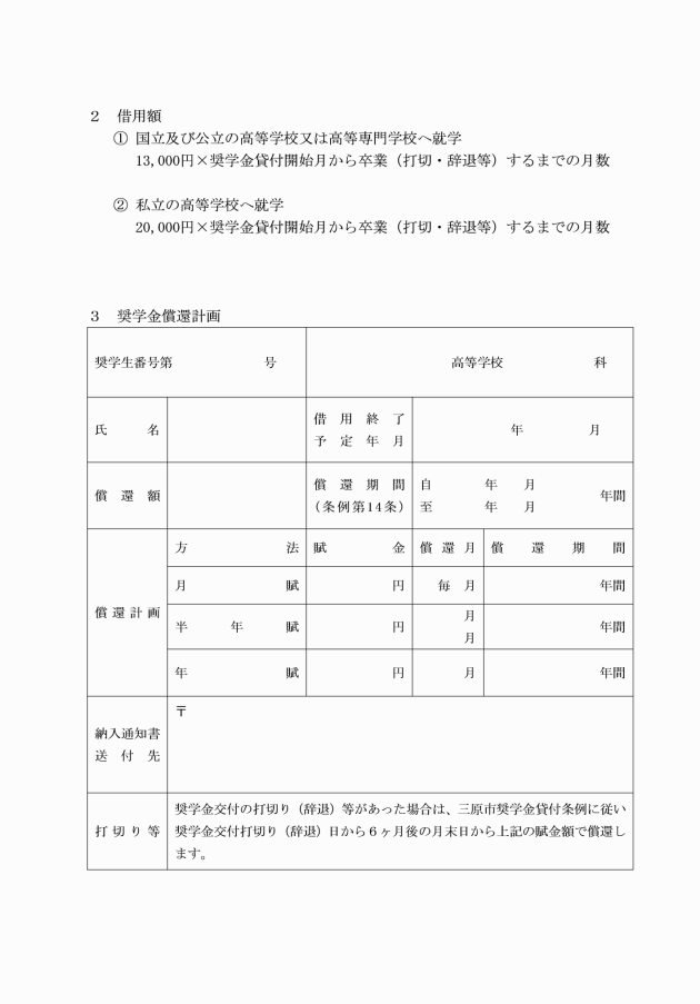 第8条 借用完了の場合には、本人又は保護者は、奨学金借用証書(様式第5号)を教育委員会に提出するものとする。
