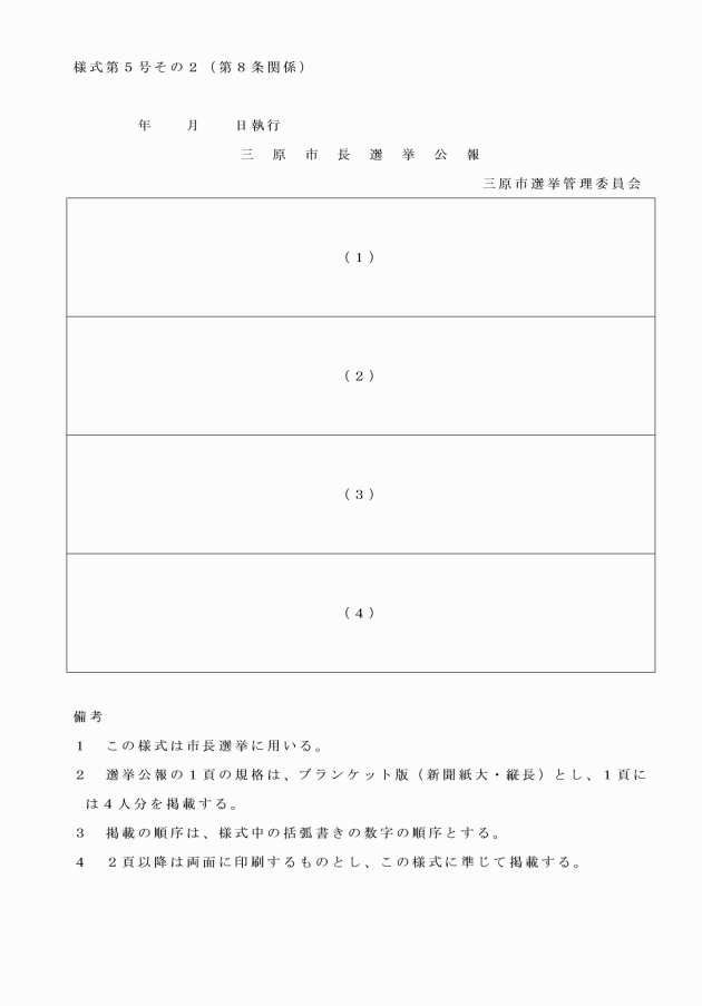 ○三原市の議会の議員及び長の選挙における選挙公報の発行に関する規程