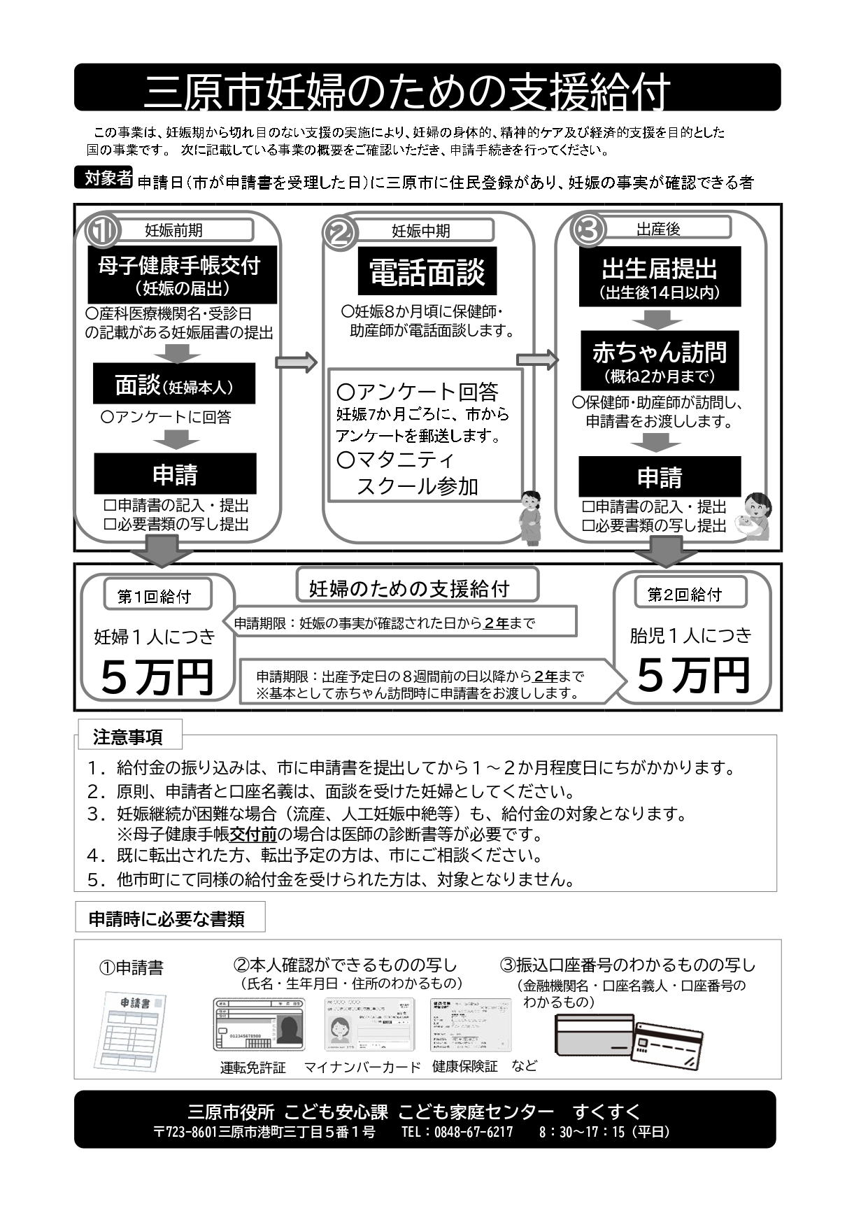 この事業は、妊娠期から切れ目のない支援の実施により、妊婦の身体的、精神的ケア及び経済的支援を目的とした国の事業で、令和7年4月から開始しました。