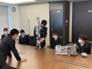 ロボットコンテスト全国大会で4連覇を達成した如水館高校ロボット研究部の皆さんから報告を受けました。