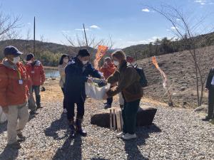 ウクライナから三原市に避難してこられているみなさんも参加し,桜の苗木を植樹しました。