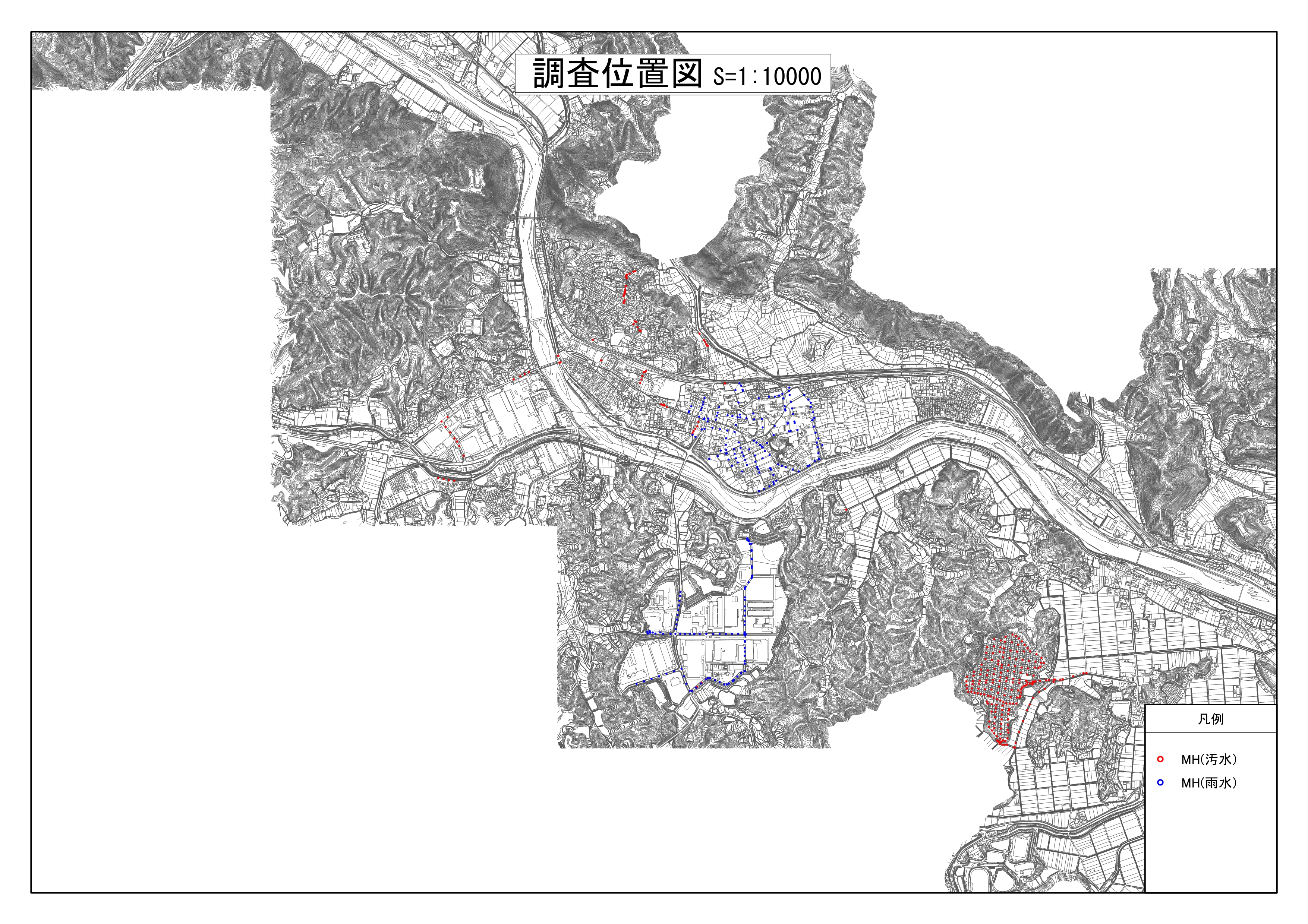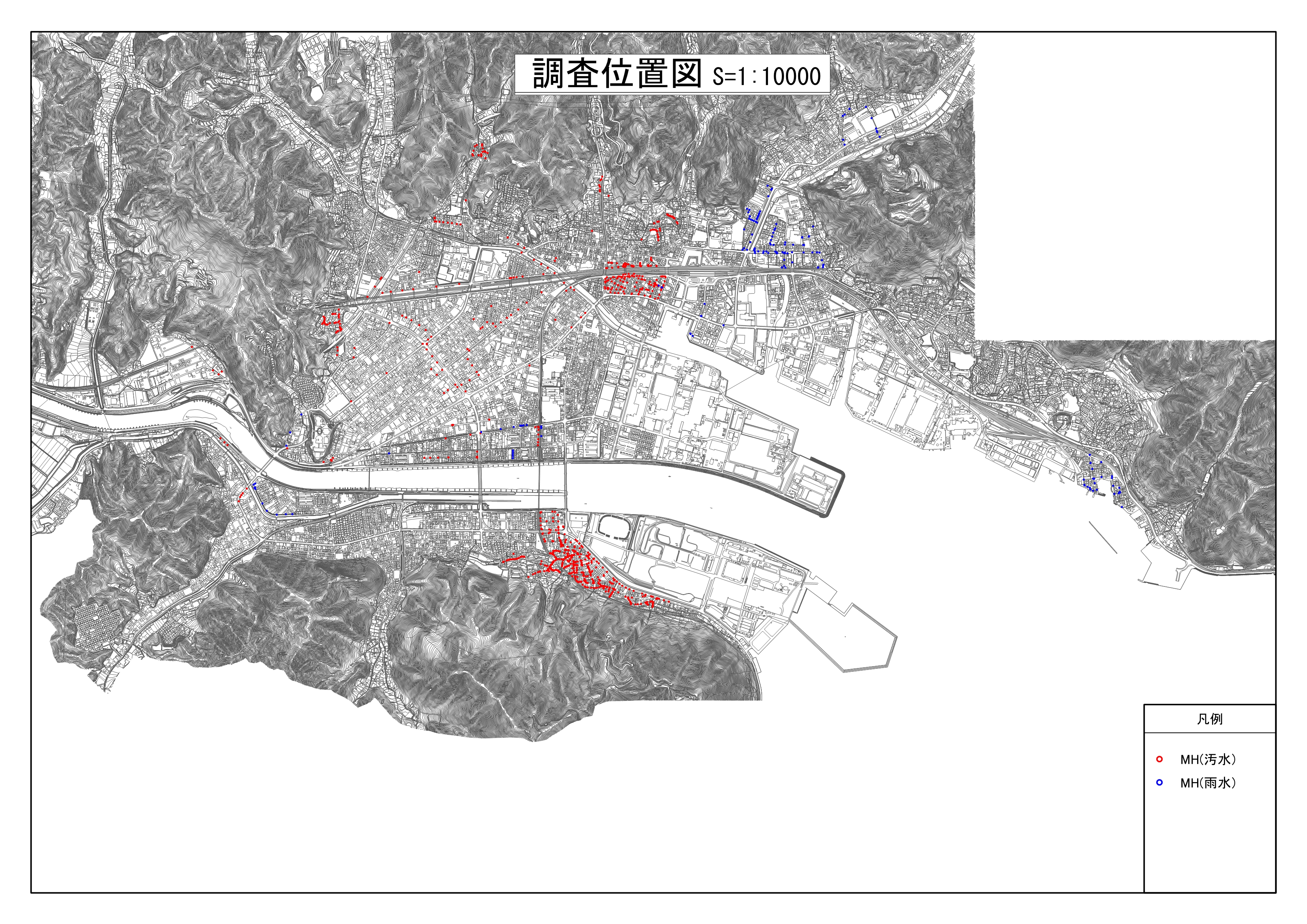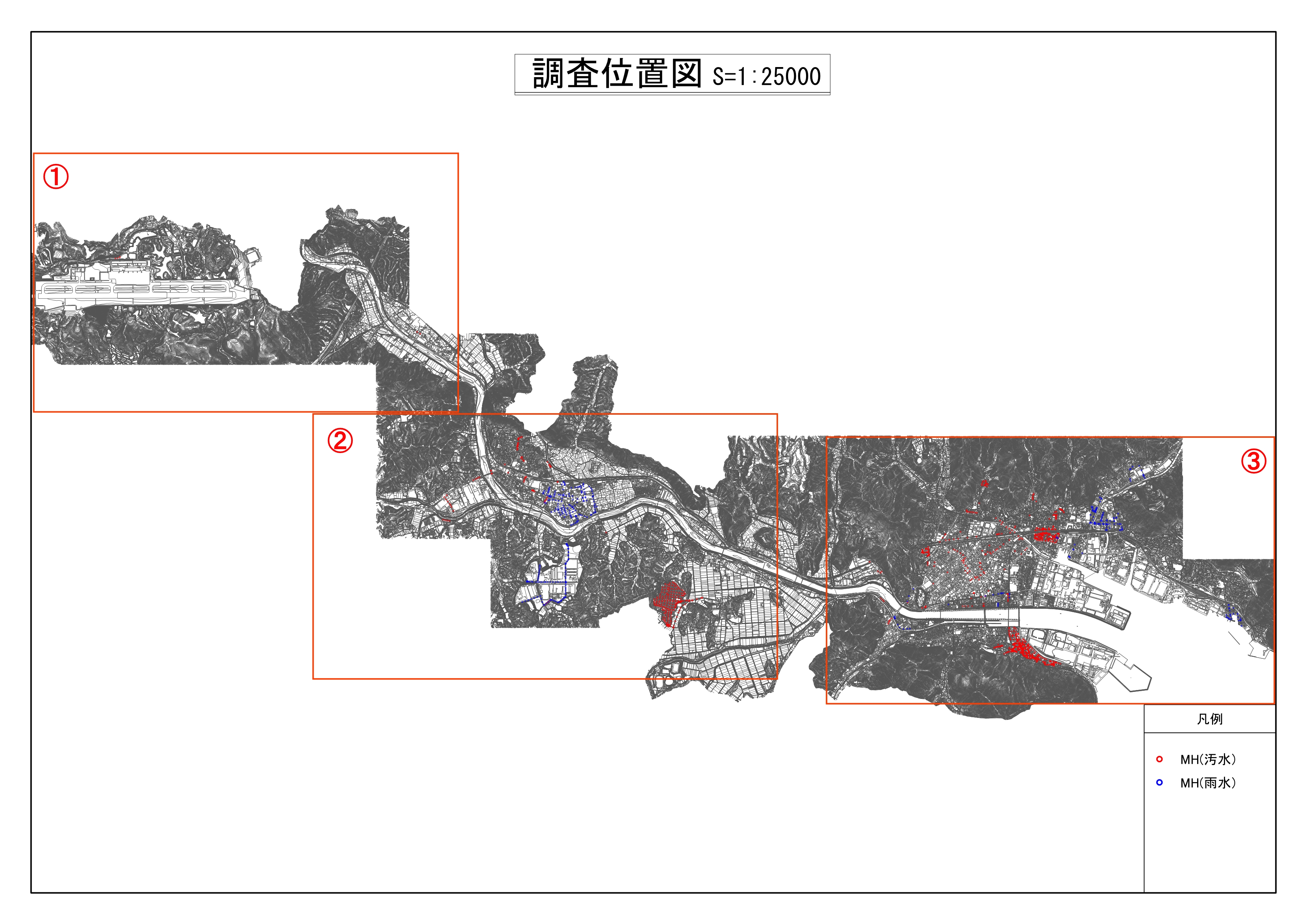 三原市内において、汚水管や雨水管のマンホール内及び管路内の点検調査を行います。