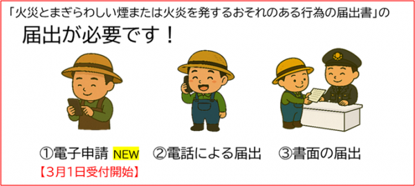 火災とまぎらわしい煙を発するおそれのある行為の届出について