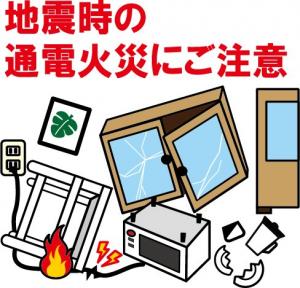 地震では、家具の転倒や配線の損傷、電熱器具の転倒などにより、火災が発生することがあります。